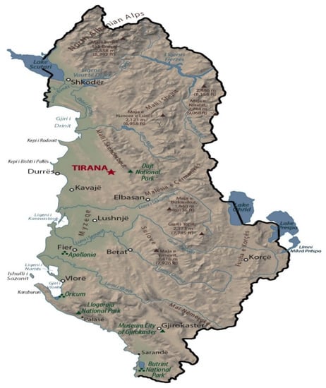 Physical Map of Albania; jpeg prepared by Mirela Tase.