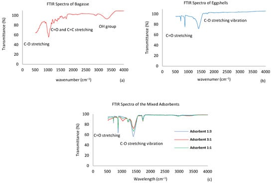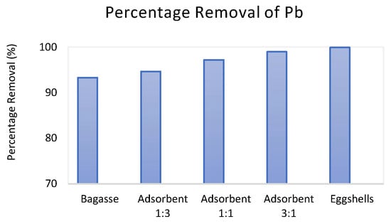 | Bagasse | Adsorbent 1:3 | Adsorbent 1:1 | Adsorbent 3:1 | Eggshells | |