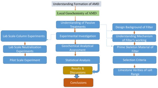In the first phase, understanding of AMD formation was realized and understanding of the local environment and local mine industry was established. After that, a review of available passive technologies was made and a suitable methodology was adopted after performing lab and pilot scale studies. A detailed review of the methodology is presented in Figure 2.