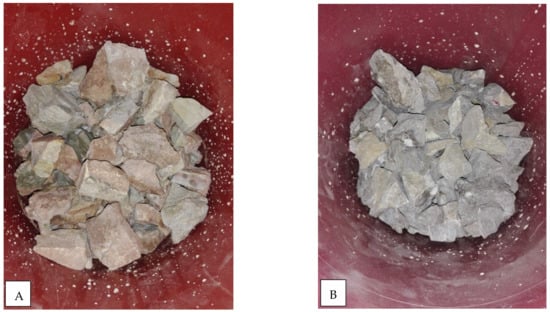In Equation (1), m shows the mass (g) of limestone and D (cm) is the nominal diameter, which is equal to the diameter of a sphere of the same volume as the particles, as shown in Equation (2):