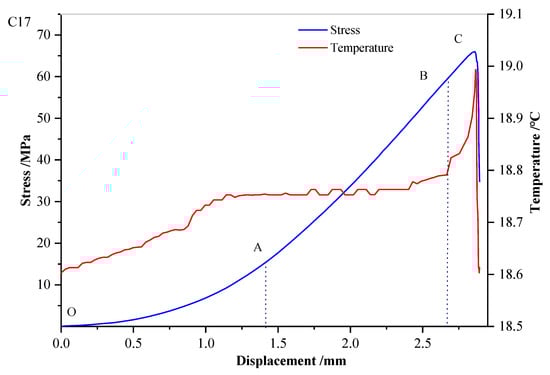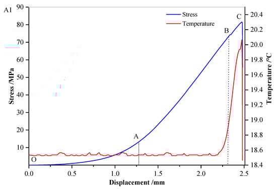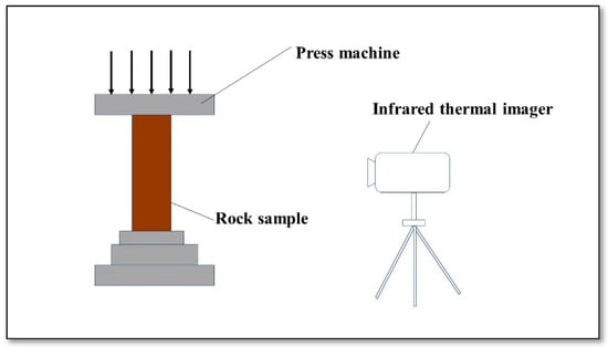 - The rock sample was placed in the laboratory for 24 h so that the temperature of the specimen is consistent with the temperature environment of the laboratory, then mechanical and infrared detection tests were performed.