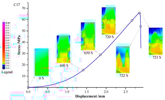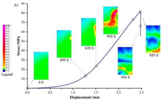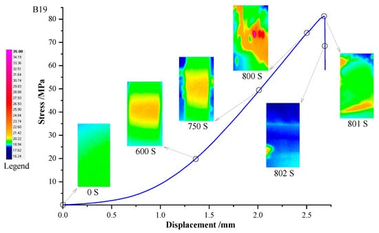 - The parameters of the thermal imaging camera were adjusted and pressed so that the thermal image acquisition frequency was consistent with the frequency of the stress displacement collected by the press, and the loading test was performed to obtain relevant information.