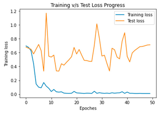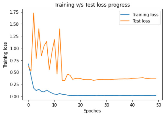 It is observed in Figure 12 that this model classified some accident classes as a no_ accident class. An effective ADRS must have a minimum false positive rate if possible. Figure 13 and Figure 14 show the training and test accuracy and loss, respectively, for the 50 iterations.