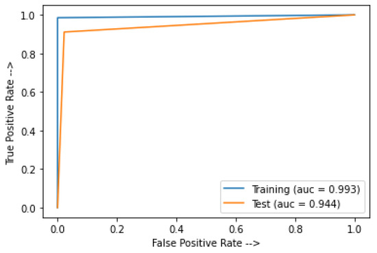The training and test accuracy of the model is 99.3% and 86%, respectively. Hence, the modified InceptionResNetV2 is overfitted and not appropriate for the ADRS. Figure 15 shows the AUC for the modified InceptionResNetV2.