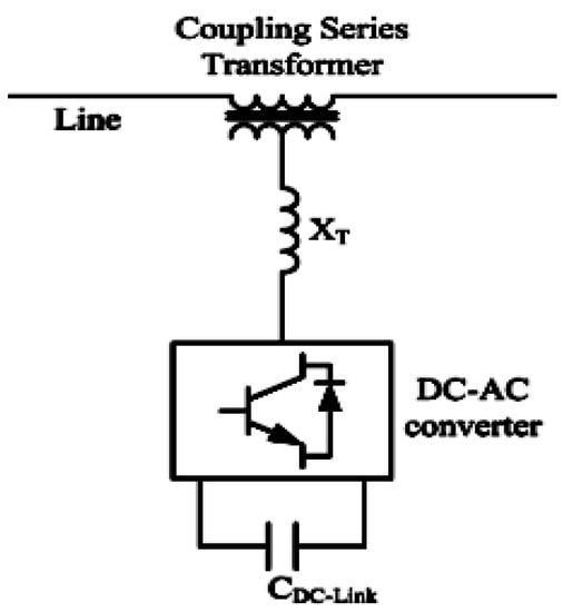 While the TCSC can be modelled as a series impedance, the SSSC is a series voltage source [42]. Figure 2 shows the Schematic diagram of SSSC designed based on solid-state voltage source converter and series connected to a transmission line through a transformer.