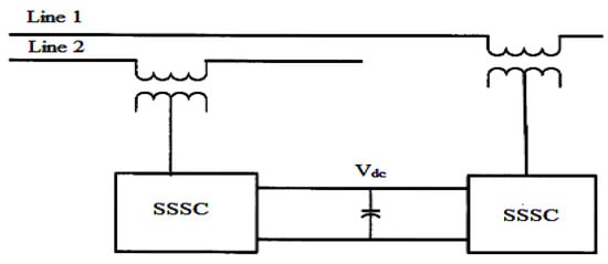 UPFC, as shown in Figure 6, is designed using STATCOM and SSSC linked together with a d.c. The converters are connected to the line with transformers. The unique combination of this device allows for flexibility of operation when connected to a power system network.