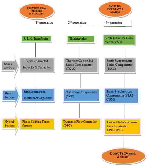 Figure 8 depicts an overview of major FACTS devices classified according to their connection and different generations.