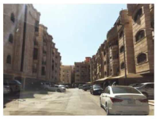 In Saudi Arabia, typical sites are characteristically family-oriented detached houses, referred to as villa-type housing (Figure 2). This pattern is reflected in contemporary neighborhoods in Saudi Arabian cities, which are dominated by large numbers of villas as opposed to apartment buildings. For instance, in 2019, in the administrative area of Alqaseem, villas comprised approximately 57.32% of residential buildings. Moreover, in the capital Al-Riyadh, villas comprise approximately 45.71% of residential buildings. However, in Jeddah, villas comprise only around 17% of the residential buildings in the city. In contrast to other administrative areas in Saudi Arabia, in the Makkah area, apartments comprise 63.38% of the total housing units (Figure 3), accounting for the highest proportion of apartment units compared with those in other administrative areas in Saudi Arabia [10]. The population density of villa-type neighborhoods varies between 15 and 70 persons/hectare, according to structural plans formulated for Jeddah. However, the population density in neighborhoods where apartments are dominant varies between 15 and 200 persons/hectare [11] (Table 1). According to the Procedure Manual for Preparation of Residential Land Subdivision (PMPRLS) issued by the Ministry of Municipal and Rural Affair and Housing (MoMaRAaH), the minimum area of a land lot for a villa should be 300 m2 [12].