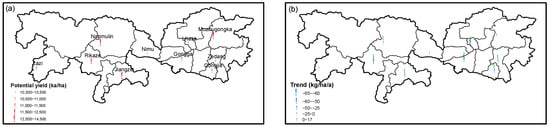 Spatial and Temporal Variations in the Potential Yields of Highland Barley in Relation to Climate Change in Three Rivers Region of the Tibetan Plateau from 1961 to 2020