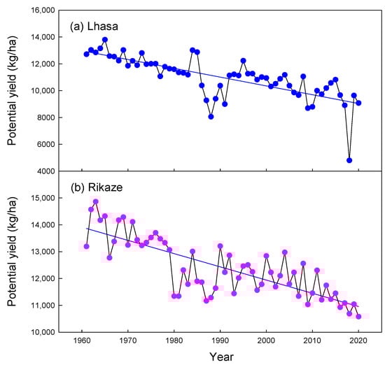 Liu, J.; Du, J.; Liu, D.-L.; Linderholm, H.W.; Zhou, G.; Song, Y.; Shen, Y.; Yu, Q. Spatial and Temporal Variations in the Potential Yields of Highland Barley in Relation to Climate Change in Three Rivers Region of the Tibetan Plateau from 1961 to 2020. Sustainability 2022, 14, 7719. https://doi.org/10.3390/su14137719