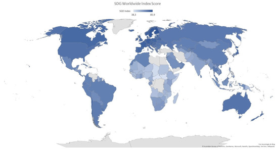 SDGS Worldwide Index Score. Own elaboration, data extracted from the database: www.SDGSindex.org/reports/sustainable-development-report-2020 (accessed on 16 April 2022).