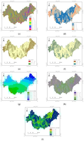where X 1 is the elevation, X 2 is the slope, X 3 is the aspect, X 4 is the height difference, X 5 is the plan curve, X 6 is the profile curve,   X 7 is the precipitation, X 8 is the TWI and X 9 is the vegetation coverage.