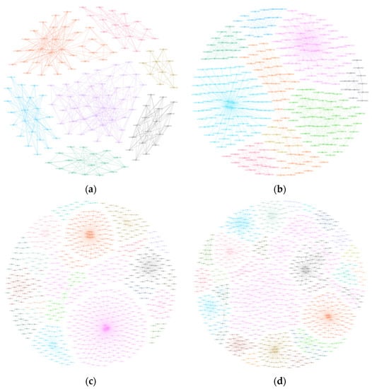 - Fruchterman, T.M.J.; Reingold, E.M. Graph drawing by force-directed placement. Softw. Pract. Exp. 1991, 21, 1129–1164. [Google Scholar] [CrossRef]
