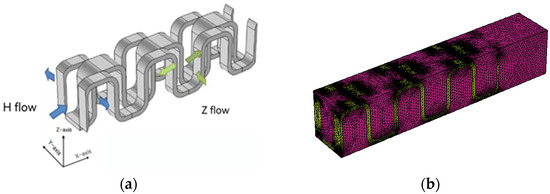 - Greiciunas, E.; Borman, D.; Summers, J.; Smith, S. A multi-scale conjugate heat transfer modelling approach for corrugated heat exchangers. Int. J. Heat Mass Transfer 2019, 139, 928–937. [Google Scholar] [CrossRef]