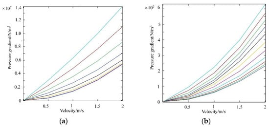 Based on the above content, the calculation result is shown in Figure 4 The nonlinear fitting correlation between pressure gradient and viscosity is obtained. On this basis, anisotropic permeability matrix κ can be obtained through calculation of H direction and Z direction respectively, as shown in Equation (7). In macro heat exchanger model, κ and β were the key parameters to characterize the flow resistance of the oil cooler.