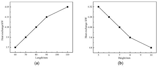 Heat exchange at different runner heights and lengths:(a) length; (b) height.