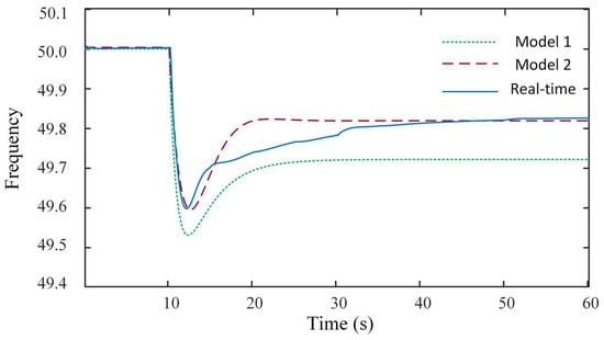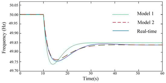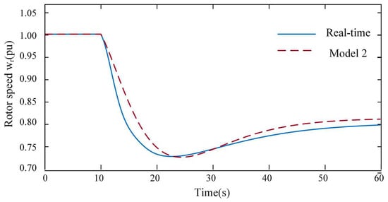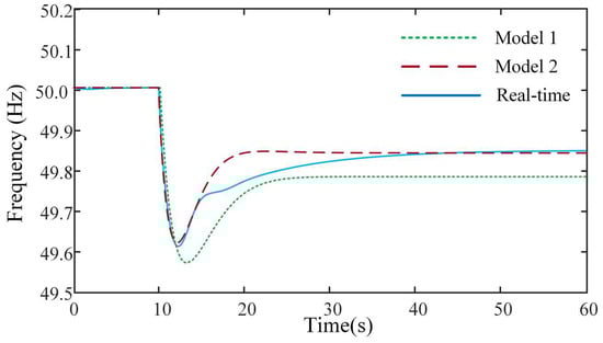When the power disturbance occurs at 10 s, the frequency decreases immediately. The lowest point of the system frequency reaches 49.6. The comparison of frequency response errors of the two models is shown in Table 4. Whether the frequency lowest point or the steady-state frequency, the model proposed this paper can better fit the frequency response of actual system.
