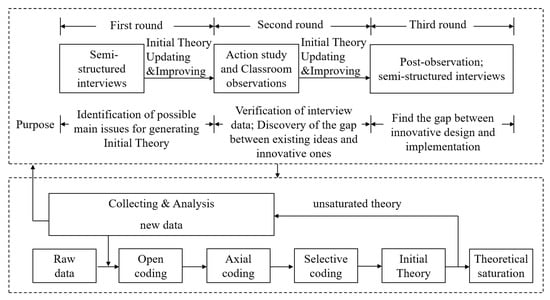 Grounded theory, which aims to generate theories from data, enables researchers to form and evolve a series of relationships into a theoretical framework [28]. Through the three types of coding (i.e., open, axial, and selective), the nonlinear and iterative processes of data collection, coding, and analysis were performed throughout the study [29].