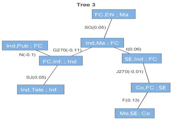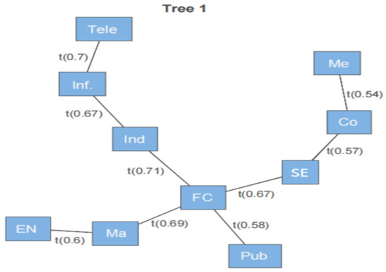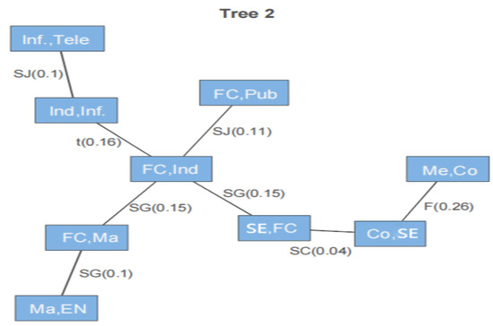 For the n-dimensional R-vine model, there are 2n – 1 RVMs that meet the conditions. To improve the efficiency of RVM, we also integrate the maximum spanning tree (MST) method proposed by Brechmann and Schepsmeier [42], and then determine the decomposition structure of the R-vine.
