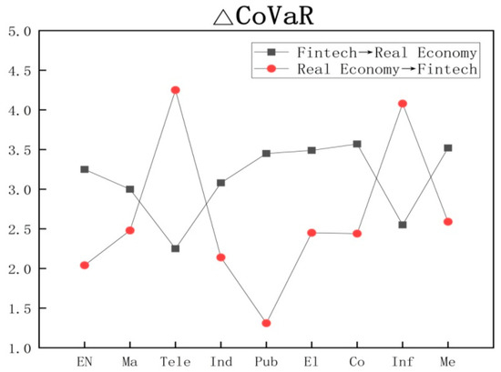 CoVaR analysis shows that extreme risk events in Fintech and various industries of the real economy have different degrees of negative impact on each other, and the risk spillover level is relatively high. When extreme risks occur in Fintech, the manufacturing industry is also subject to a high degree of risk impact. Although the public utilities industry and selective industries have a weak relationship with Fintech, they are also vulnerable to extreme risk spillovers from Fintech due to their weak financial risk prevention ability.