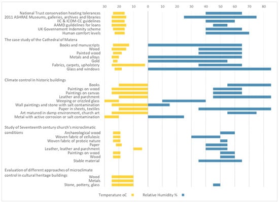 Sensitivity ranges for individual items and material types. The case study of the Cathedral of Matera [], Climate control in historic buildings [], Study of Seventeenth century church’s microclimatic conditions [], Evaluation of different approaches of microclimate control in cultural heritage buildings [].
