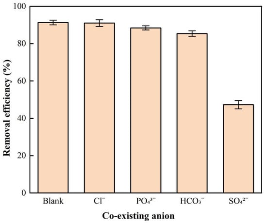 Effect of co-existing anion on NO3−-N removal onto BAG10 (conditions: C0 = 50 mg/L, adsorbent dose = 0.2 g, pH = 7.0, contact time = 4 h, and T = 25 ± 1 °C).