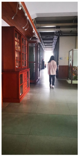 Regarding nature selection, we chose Drunken Moon Lake, the largest and most easily accessible greenspace area at National Taiwan University (NTU). The path around the lake is nearly 480 m and has shaded grassland under the trees. The biodiversity of the park is rich, with ducks, geese, birds, fish, and squirrels easily seen despite the presence of manmade constructions such as stalls and teaching buildings. In general, this area grants a sense of serenity and connection to nature. As for the indoor group serving as a comparison group, due to the pandemic and entry restrictions in most faculties, we chose a forestry building that allowed for quality monitoring. The venue is a four-story building with corridors shorter than 100 m and a conference room in which the participants could freely move around during the program sessions. Lights and air ventilation were activated during sessions. To make the environment less congested for the indoor group, we restricted the number of participants to eight per session. Each session took place on a weekday and was conducted at 11:30 a.m. for the outdoor group and 1:00 p.m. for indoor group to avoid the peak hours of the usage of the park and the building, correspondingly. See Figure 1 and Figure 2 for images from the indoor and outdoor groups, respectively.