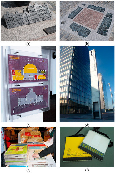 - Kłopotowska, A.; Kłopotowski, M. Dotykowe Modele Architektoniczne w Przestrzeniach Polskich Miast (Tactile Architectural Models in the Spaces of Polish Cities); Vol. I. Standardy; Oficyna Wydawnicza Politechniki Białostockiej: Białystok, Poland, 2018; pp. 9, 47. (In Polish) [Google Scholar]