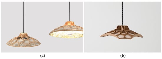 Finally, the 19 design concept prototypes that were completed in this phase were preliminarily divided into three categories, namely, lampshades (six pieces), daily necessities (five pieces), and accessories and artistic creations (eight pieces). On the basis of the taxonomy and the three categories of material-tinkering techniques, six cases of work were selected and presented (Table 1). The material-tinkering techniques included: material shaping and drying using moulds; an orientation towards the concept of fibre paper making was realised by smashing the material and experimenting with the addition of pulp, paste, and agar to allow for the broken starchy material to be shaped through gluing during the drying process; reinforcing the material structure by weaving metallic fibres into the grid interstices of the banana fibres; adding fibre to handmade soap to create bath balls as an alternative product; adding fibre to clay by applying concepts such as pottery firing.