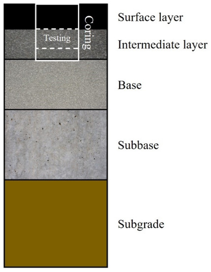 The most common method of investigating the conditions of the intermediate layer involves examining the samples cored from asphalt pavements or measuring mechanistic properties such as fracture toughness (FT) or indirect tensile strength. The indirect tensile strength test is an advanced method to evaluate the cracking resistance of asphalt pavement that replaces the Marshall stability test [3]. However, the indirect tensile strength has the disadvantage of not taking the deformation of the sample into account because it is calculated from the load applied at the time of destruction and the sectional area of the sample.
