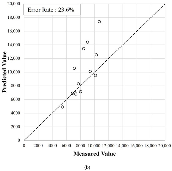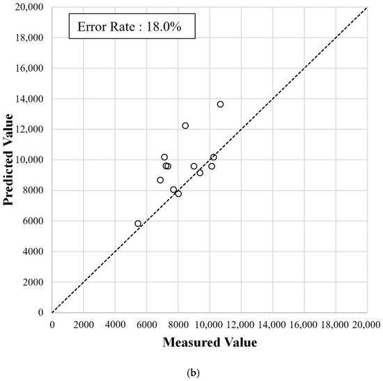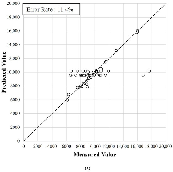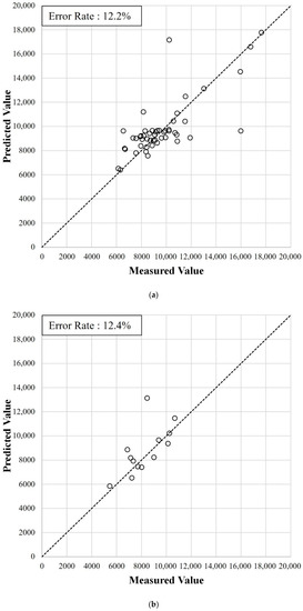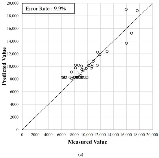 We compared the error rates from the training dataset with those from the test dataset. We calculated the error rates by dividing the error between the predicted and measured FTs by the measured FT, as expressed in Equation (15). The average of the entire error rate calculated for each FT is used to represent the error rate of each candidate model.