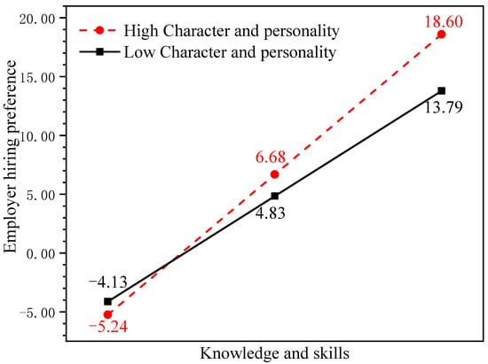 The effect of knowledge and skills on employer hiring preference is greater as levels of character and personality increase.