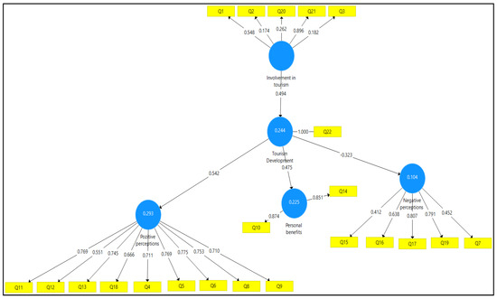 Q6 item (Tourism development would increase the residents’ awareness concerning the value of cultural heritage and tourism) has the most representative statistical contribution to the latent variable Positive Perceptions (external load-0.775, higher than Q4, Q5, Q8, Q9, Q11, Q12, Q13 and Q18);