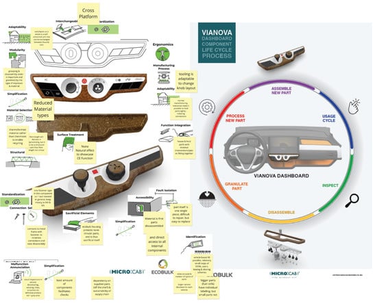 The automotive cases focused on the interior components, which are part of a larger vehicle assembly process. The vehicle lifetime, thus, formed a boundary condition for that of individual components. In addition, in the automotive industry, the governing recycling directive [] has led to an industry model where vehicles are centrally reprocessed in bulk, for example by INDRA (France) and ARN (the Netherlands) [,]. E3 and E5, both of which are established players in the automotive sector, decided to focus on bulk recycling into plastic compounds. E4 on the other hand had the opportunity to design a complete vehicle, and planned for the maintenance and refurbishment of parts.
