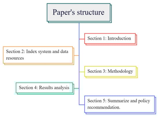 Based on the above ideas, as shown in Figure 1, this paper is structured as follows: Section 1 introduces the research purpose and necessity, at the same time illustrates the theoretical background and innovation points of this paper; Section 2 clarifies the index system and data resources; Section 3 elaborates the methodologies, which include three-stage DEA model and Malmquist index method; Section 4 presents empirical results and discusses the analysis results; Section 5 summarizes the research findings and puts up forward policy recommendations.