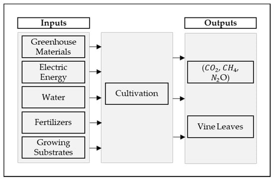 According to the LCA method, to determine carbon footprint, it is necessary to define the boundaries of the system and the functional unit. In our case scenario, calculations concern the cultivation phase so the other input categories such as transportation, processing, and the final disposal to the consumers were omitted (Figure 1). Greenhouse construction materials, electric energy consumption, and water, along with fertilizers used in hydroponics throughout the experiment, were taken into consideration.