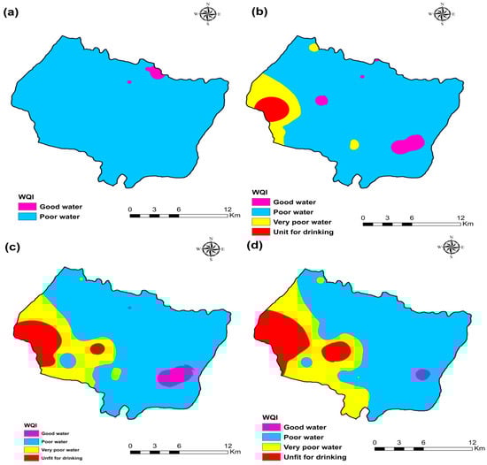Water quality index (WQI) map of the four campaigns (a) 2009, (b) 2017, (c) 2018, and (d) 2019.
