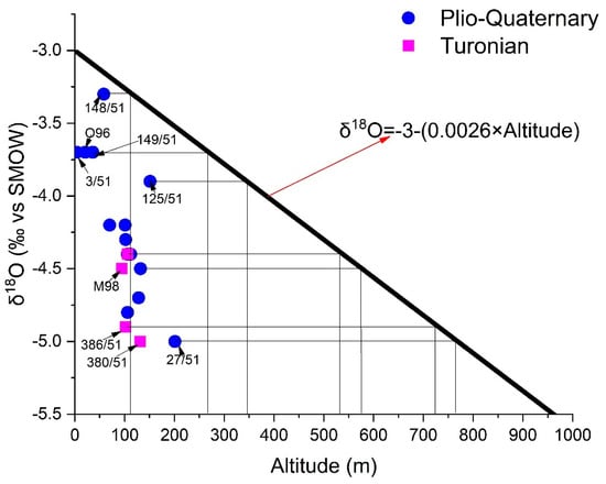 Furthermore, the altitudes of the recharge areas of the Plio-Quaternary aquifer vary between 100 and 800 m, and those of the Turonian recharge vary between 550 and 800 m.