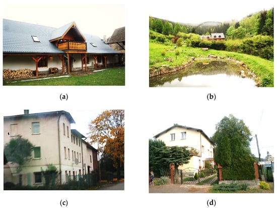 According to Article 2 of the Act on official names of places and physiographical objects, a village is a settlement unit with compact buildings and existing agricultural functions, related service functions or tourist functions, which does not have urban rights or city status (the Act of 2003 on official names of places and physiographical objects). Until recently, rural areas were dominated by agricultural land use and the associated occupational structure of the population and the relationship between work and residence. Changes in the functioning of villages have resulted in their transformation into a model of a diverse village [21,22]. The European Union sees great potential in rural areas, as they account for as much as 80% of its territory. Rural areas are characterized by a variety of cultures, natural resources and historical monuments. At the same time, they are attractive places for social life, residence and tourism, including rest, recreation, entertainment, gastronomy, communing with culture and nature [16,23]. Polish rural areas are inhabited by around 38% of the country’s population, while they cover over 90% of the country’s area. They are therefore of great importance in economic, social and environmental terms [24,25,26,27]. The open landscape of rural areas is important in terms of tourism activities, especially in the case of a variety of mountainous regions [28,29,30,31,32]. Noted that these aspects contribute often to considerations of multifunctional rural development and landscape transformation at the local level [33,34,35,36,37,38,39].