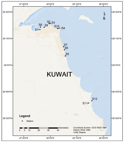 - Al-Sarawi, H.A.; Jha, A.N.; Al-Sarawi, M.A.; Lyons, B.P. Historic and contemporary contamination in the marine environment of Kuwait: An overview. Mar. Pollut. Bull. 2015, 100, 621–628. [Google Scholar] [CrossRef] [PubMed]