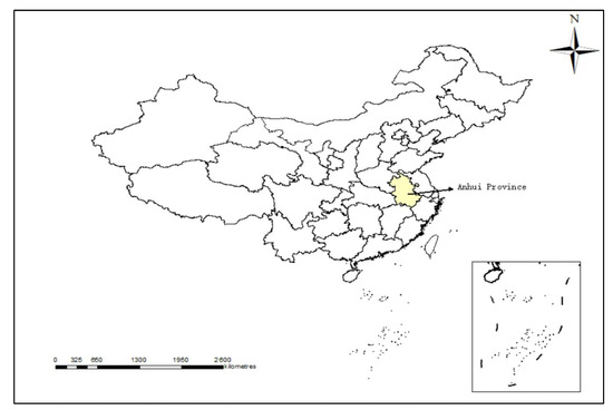 The study was conducted in Anhui Province, China in the year of 2017. For obtaining the data we need in this article, we conducted a questionnaire survey on the large-scale grain growers whose transfer-in cultivated land is over 3.33 ha, and the number of original samples obtained from the survey is 414 in total. Figure 1 displays the locations of Anhui Province.
