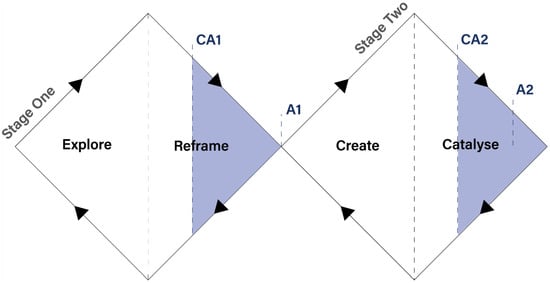 27]. The previous iteration of the Double Diamond (2015) has been embedded into the Product Design pedagogy; thus, transitioning to the new model was a natural fit, as the previous incarnation has proven successful. In addition to rephrasing the stages of the design process, the model also introduced six principles (see