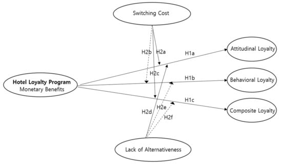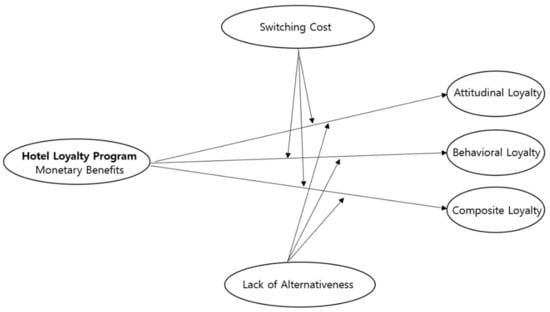 Hauser et al. [16] argued that increased costs result in lower price sensitivity in a fixed marketplace, which allows a customer to change their supplier easily, regardless of their satisfaction or loyalty. Additionally, when the marketplace becomes fluid or a major supplier enters the market, the customer feels less empowered due to a lack of alternatives, which also creates a trapped feeling [27,44]. This study adopted a negative switching barrier approach in order to explore the relationship between a hotel loyalty program’s monetary benefits and multidimensional loyalty. The negative switching barrier approach is an effective tool for analyzing the current marketplace, which is monetarily invested and an oligopoly of only a few international hotel suppliers such as Marriott International®, Hilton®, Intercontinental®, and Accor®.