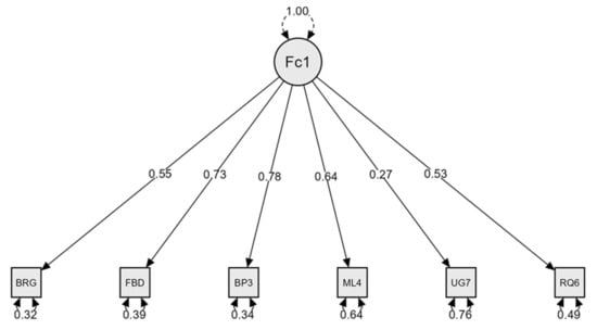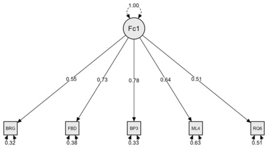 A confirmatory factor analysis (CFA) was used for the study’s proposed model (Figure 1). The results of the CFA based on the data indicated that the proposed model satisfactorily fit the data (F = 4.291, p = 0.002).