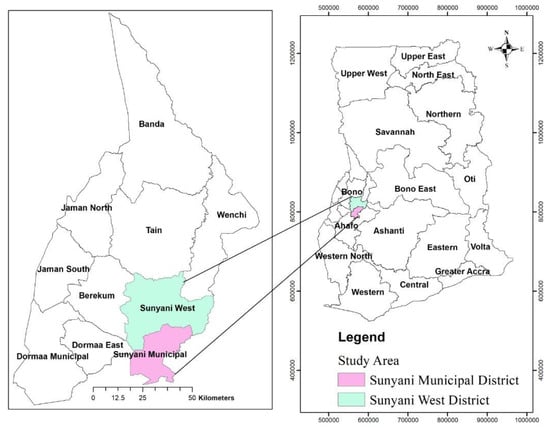 The research area is depicted on a map of Ghana and the Bono Region.
