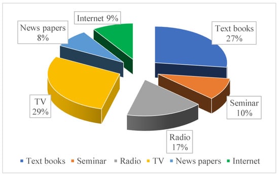 Teachers learned about climate change from a variety of sources, according to the study. This conclusion is in line with the findings of the United Nations Institute for Training and Research [16]. Audiovisuals, manuals, teachers’ resource guides, specific web-based lessons, training modules, and books, according to UNITAR, are essential sources of climate change information for high school teachers. Due to a lack of access to technology such as laptops and adequate internet connectivity at the time of the study, ref. [17] discovered that textbooks and instructors’ guides were the primary sources of climate change information. Educators can now rely on a wide range of media, maps, simulations, websites, television shows, movies, field trips, and experiments as sources of climate change information, in addition to printed resources and teacher’s manuals. Ref. [18] published a report in 2010 that stated: Teachers’ pedagogical competence may develop as a result of the various resources available to them, allowing them to construct classes that enhance student involvement in science education. According to literature from Sub-Saharan African countries, resources are vital, and the textbook, which serves as a training tool for teachers and students, is the most important input [19]. The availability of textbooks has a large and favorable impact on learning outcomes, according to [20]. In the case of textbooks in Ghana, for example, current material on climate change may be lacking because they are rewritten every six or seven years on average.