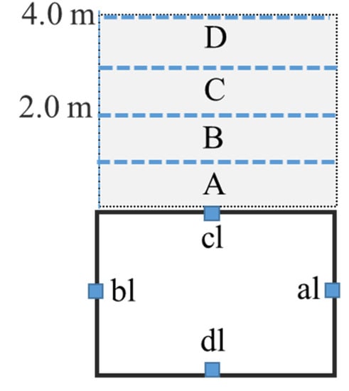As shown in Figure 5, monitoring points (al, bl, cl, and dl) were arranged at the center of two ribs, top and bottom of the roadway, to record the displacement changes on the surface of the surrounding rock after the roadway excavation.