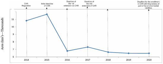 Annual deforestation after CAR regulation. Source: [19] Organized by authors.