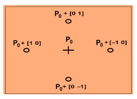 The PS commences the investigation with a user-defined initial location, P0. The mesh level is taken as 1 in the first round, and the pattern elements are generated as [0 1] + P0, [1 0] + P0, [−1 0] + P0, and [0 −1] + P0, and novel mesh elements are added as depicted in Figure 4. The fitness function is then computed for each created sample element until a value less than P0 is discovered. The poll is successful if there is such an element (f (P1) < f (P0)), and the PS method assumes this element as the basis point.
