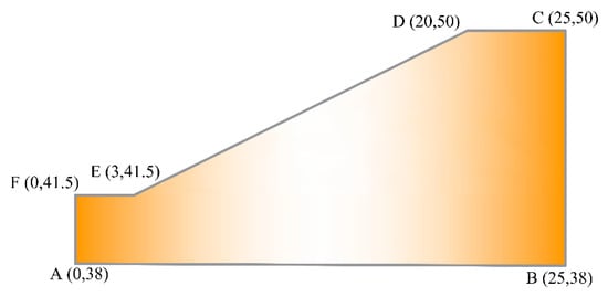 The scaling factor (λ) and FOS are two unknown factors in the Morgenstern–Price method that are deduced from moment and vertical force equilibriums []. Because of the complexity of the obtained equations, evaluating the FOS and λ is often complicated. In order to solve the aforementioned challenges, Zhu et al. [] developed a concise version of the Morgenstern–Price approach. In this concise method, the inclination of a resultant inter-slice pressure varies symmetrically with the mass of the slide, and the correlation between the shear (T) and normal (E) inter-slice forces is offered as follows: